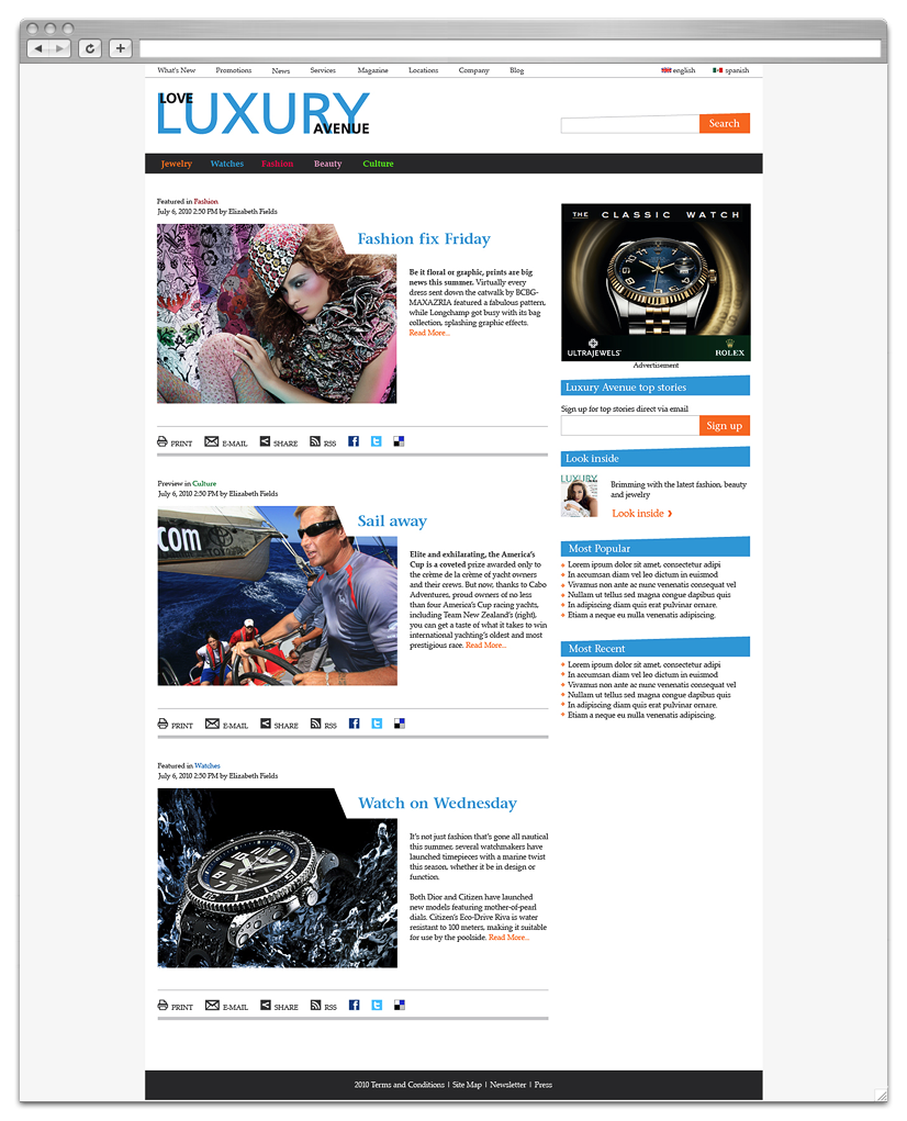 The challenge was to design and develop a stunning looking template that will be easy to update by the artworkers. My involvement, aside from designing, was developing the theme using xHTML and CSS.