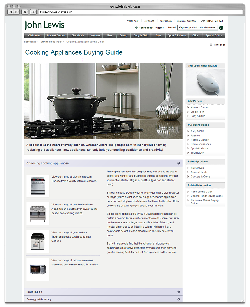 Providing the customer with information to help them choose the right product is a complex issue and one which John Lewis seeks to simplify.