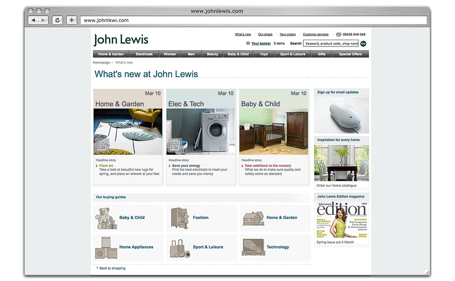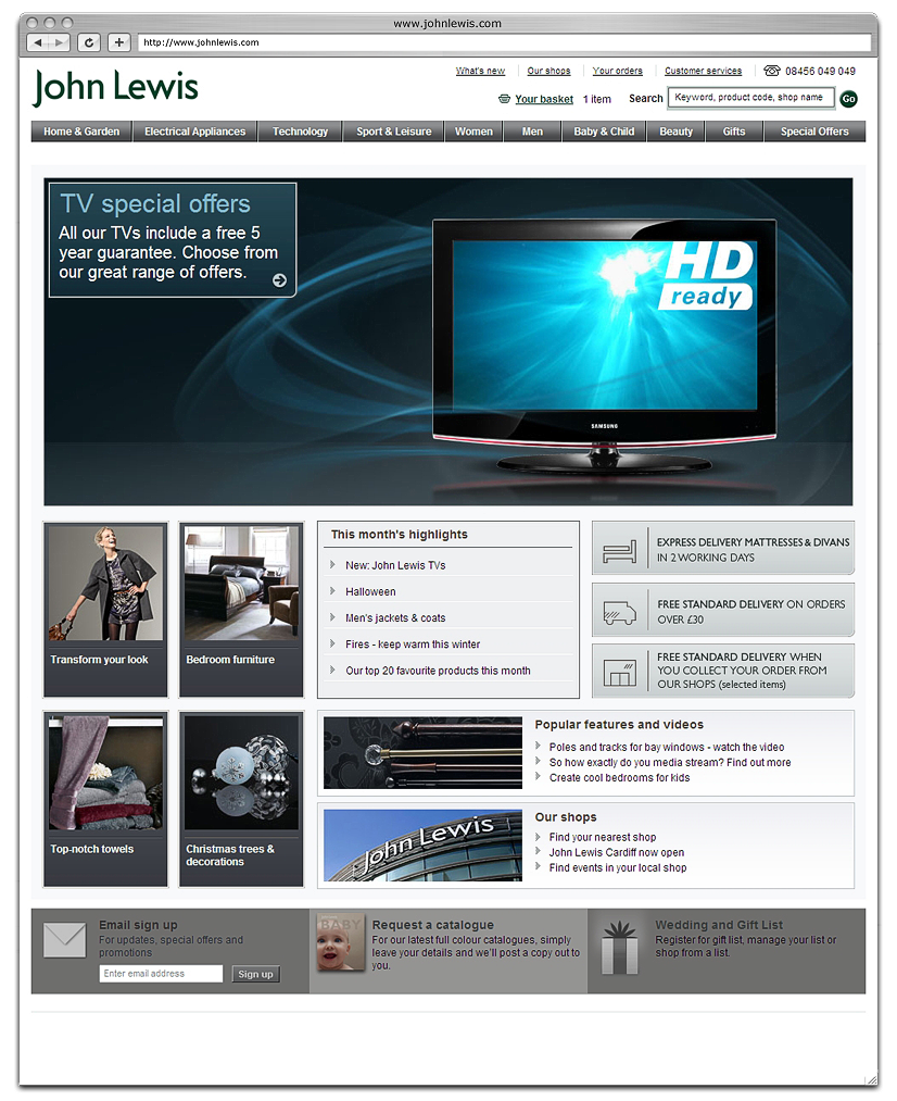 The online division of the UK's favourite retailer understands that to be a major eCommerce player they need to have an engaging, informative and user friendly homepage.